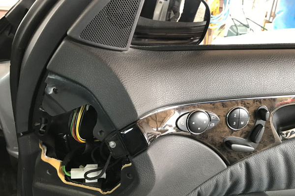 ミラー内にある配線が断線しかかっていてました。他の配線も経年劣化で硬化している為、ハーネスという配線の束を交換させて頂きました。