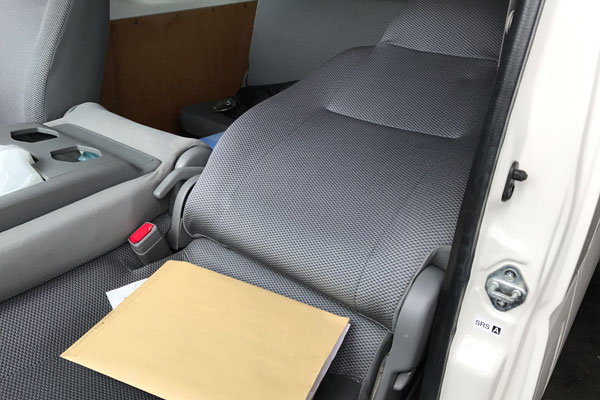 こちらのハイエースは、助手席シートのリクライニング機能がなく、助手席に座る方は若干窮屈感があります。