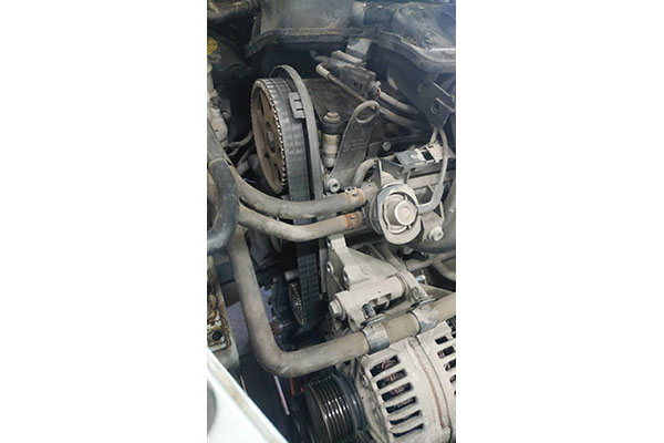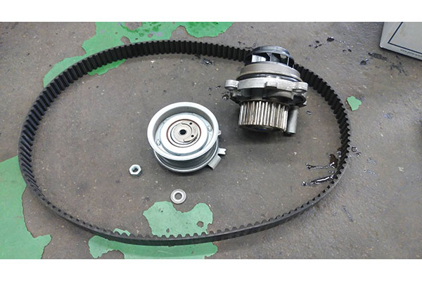 タイミングベルトの交換時には、ウォーターポンプの同時交換をお勧めいたしております。時期的にも冷却水漏れが発生してもおかしくないからです。ウォーターポンプを単品で交換するにはタイミングベルトを取り外す作業が必要となる為、後日行うよりも工賃的にもお得となる為です。